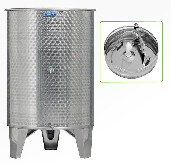 Minden tartály magasfényű rozsdamentes (1.4301 jelölésű) acélból készül. Tartozik hozzá egy porvédő és egy úszófedél, valamint típustól függően 1-3 csap. Rozsdamentes acélból készült bortároló tartályok kis mérettől (12 liter) - ipari méretig (6.400 liter)kaphatóak.